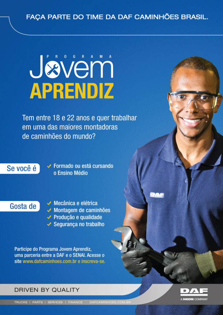 A DAF Caminhões Brasil, em parceria com o SENAI, dá início ao Programa Aprendiz, abrindo 15 vagas de aprendizagem na fábrica da empresa, localizada em Ponta Grossa, no Paraná. O objetivo é que os estudantes possam aprender os processos de montagem, qualidade e manufatura da linha de produção. Jovens de 18 a 22 anos com segundo grau completo ou cursando podem se inscrever. O Programa...