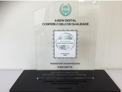 A Favorita Transportes foi contemplada no último sábado com o prêmio de melhor entrega de Natal e Black Friday 2015, concedido pela B2W Digital, uma das maiores e principais empresas de e-Commerce do Brasil e da América do Sul. A premiação é anual e tem como objetivo incentivar cada vez mais a qualidade do serviço no setor além de destacar as empresas de Transporte Rodoviário...