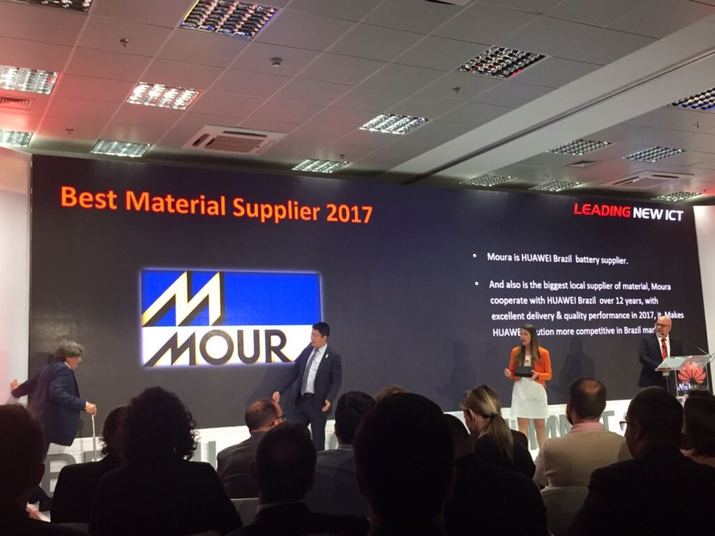 O Grupo Moura recebeu da Huawei Brasil, o Prêmio de Melhor Fornecedor de Materiais no País. A premiação foi um reconhecimento à qualidade, competitividade e performance logística da Moura no ano de 2017. Anualmente, a Huawei, líder global de soluções em Tecnologias da Informação e Comunicações (TIC) para indústrias e presente em mais de 170 países, premia os fornecedores e parceiros que obtiveram melhor desempenho....