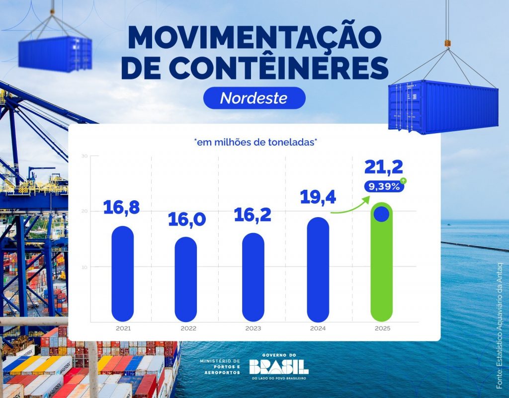 Além disso, a carga conteinerizada tem papel central na integração logística. Ao facilitar o transporte intermodal, ela contribui para maior padronização, segurança e melhor aproveitamento da infraestrutura portuária. Como consequência, também possibilita a redução de custos e de tempo na movimentação de mercadorias, fator relevante para o comércio internacional. De acordo com o material divulgado, essa dinâmica faz parte da estratégia de diversificação dos investimentos do ministério nos portos nordestinos, ao mesmo tempo em que amplia a conexão da indústria local com mercados globais.