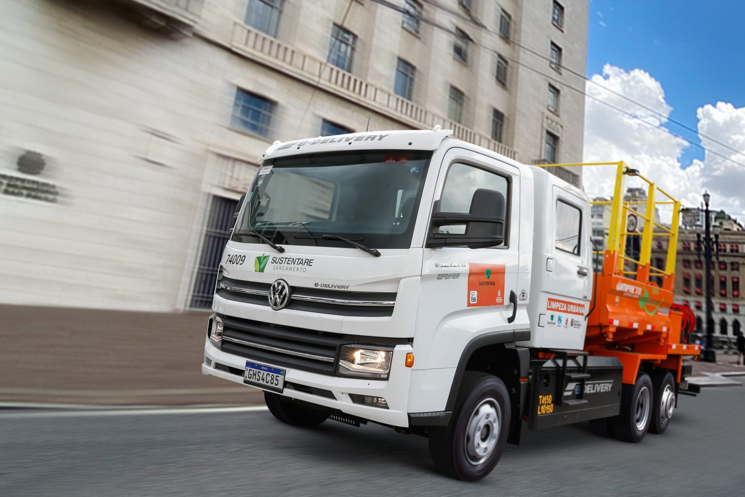 Dois caminhões e-Delivery, da Volkswagen Caminhões e Ônibus, vão atuar no centro da cidade de São Paulo, nos serviços de conservação urbana sob responsabilidade da Sustentare, uma das maiores empresas brasileiras de limpeza pública.