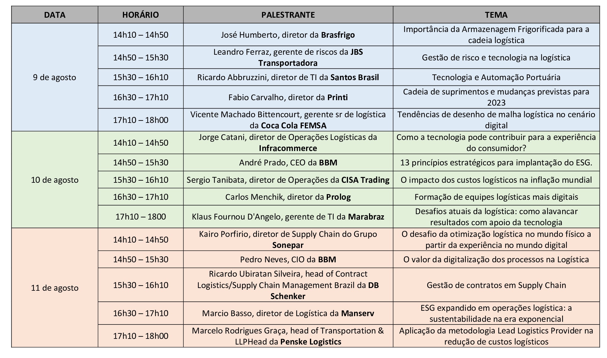Entidades apoiadoras: ABOL, Abralog, CNT e SER Logístico. Mídias apoiadoras: Grupo Logweb, Mundo Logística e Tecnologística. Patrocinadores: Wiipo, Amazon e Veloe.